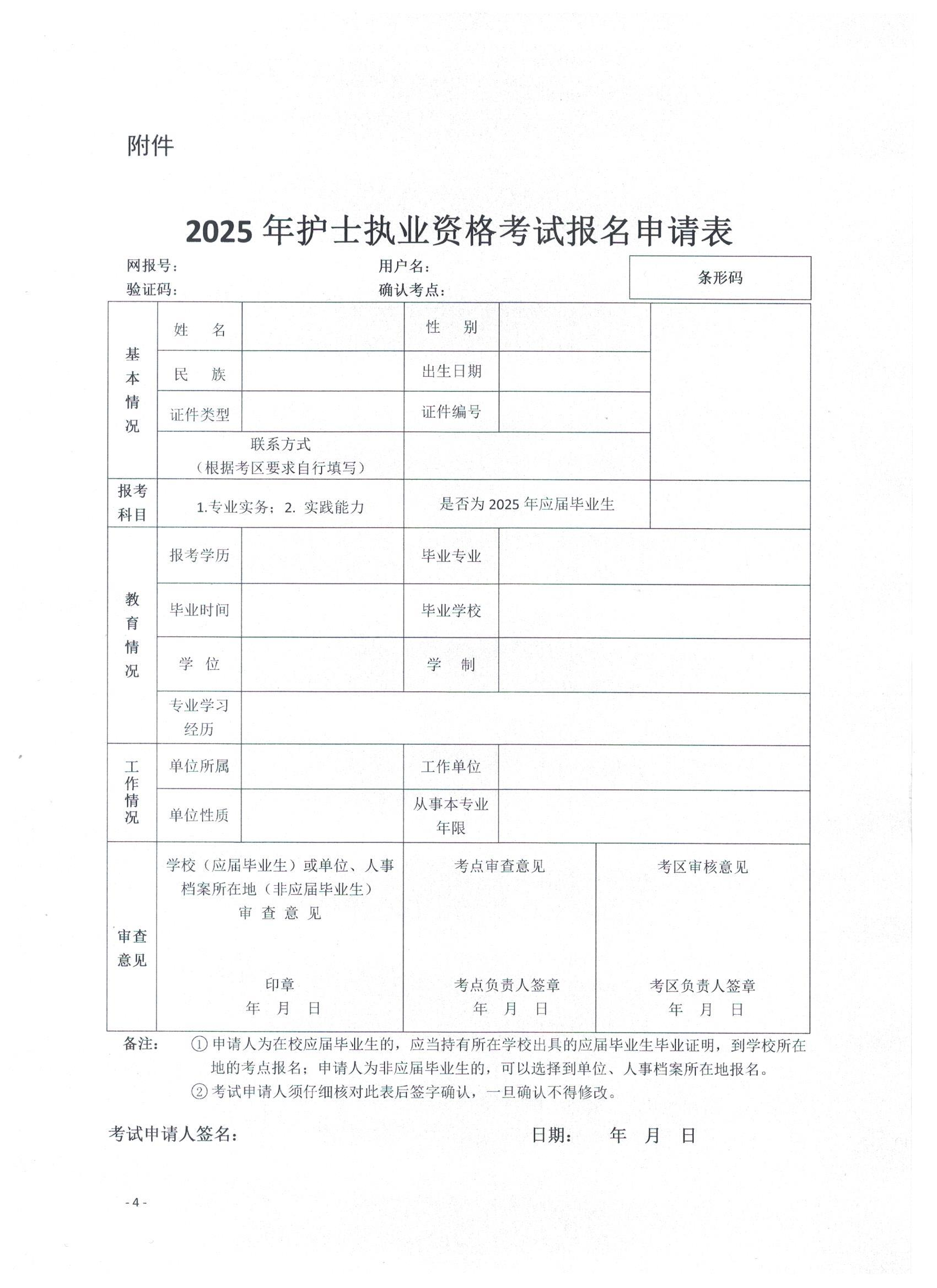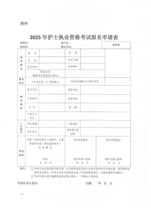 3.2025年护士执业资格考试报名申请表
